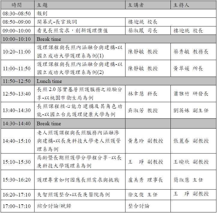 Symposium for the Long-term Care Policy 2.0 on Nursing Course Design