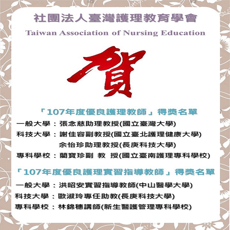 【第38期】本學會『107年度優良護理教師選拔』及『107年度優良護理實習指導教師』得獎名單