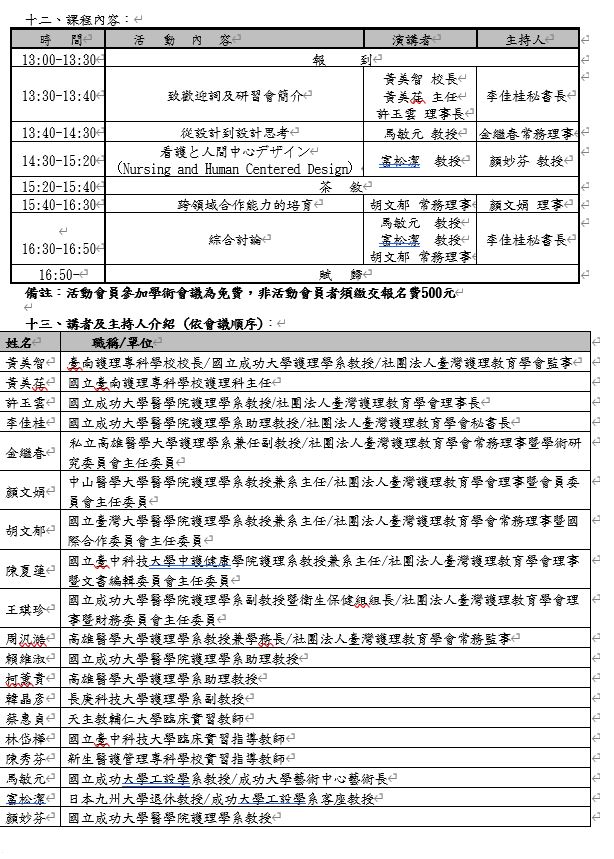 優良護理教師及優良護理實習指導教師甄選審查區