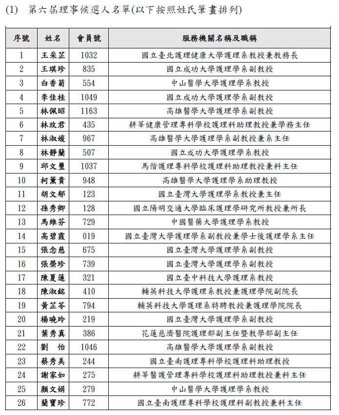 [重要通知]臺灣護理教育學會 第六屆理、監事候選名單公告,將於111/3/12(六)選舉, 請會員踴躍出席選舉!!